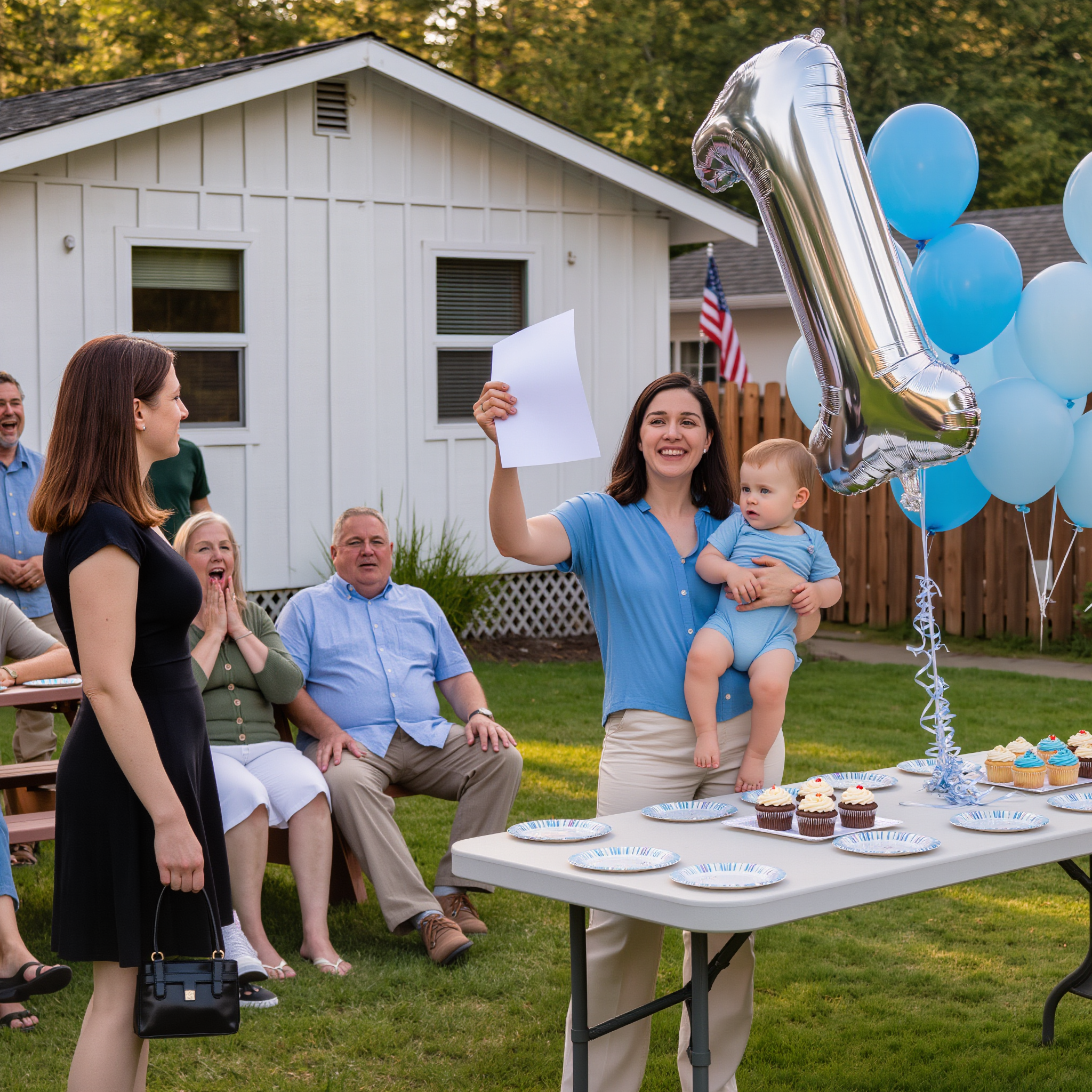 The small house was decorated with blue balloons and streamers. A banner reading “Happy First Birthday, Lucas” stretched across the living room wall. I noticed a group of people I did not recognize clustered in the kitchen, whispering. They fell silent as I passed, their eyes following me.