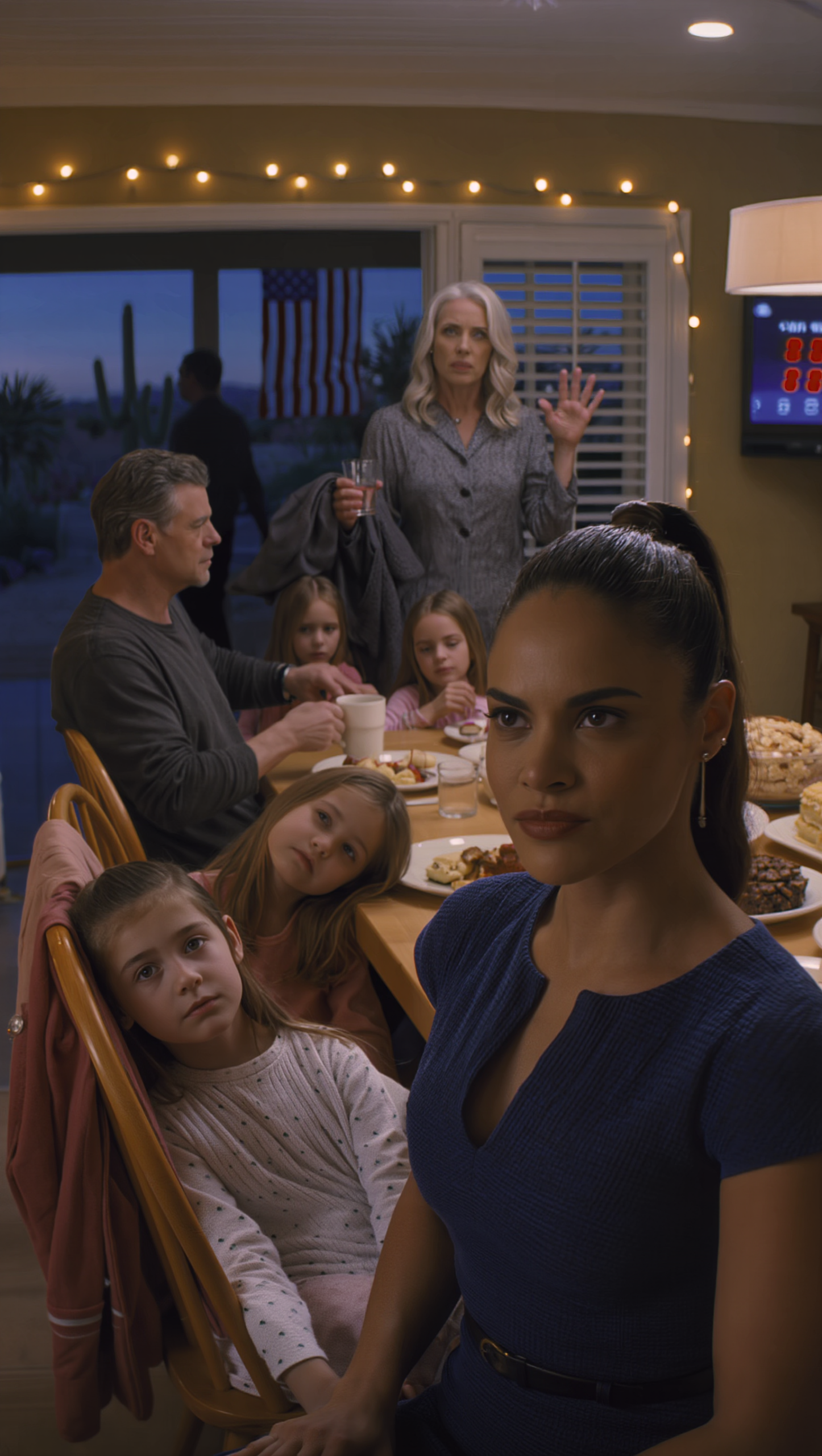 We were halfway through dessert at her shiny new suburban house, everyone pretending to be relaxed while the TV in the background counted down to midnight, when she suddenly stood up, lifted her glass, and said loud enough for the whole dining room to hear, “We are not babysitting your kids anymore.”