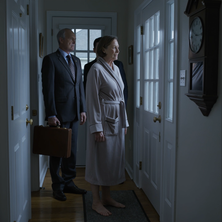Attorney Arthur Bernard stood there, dressed in a crisp gray suit, leather briefcase in hand. He had arrived earlier than expected.