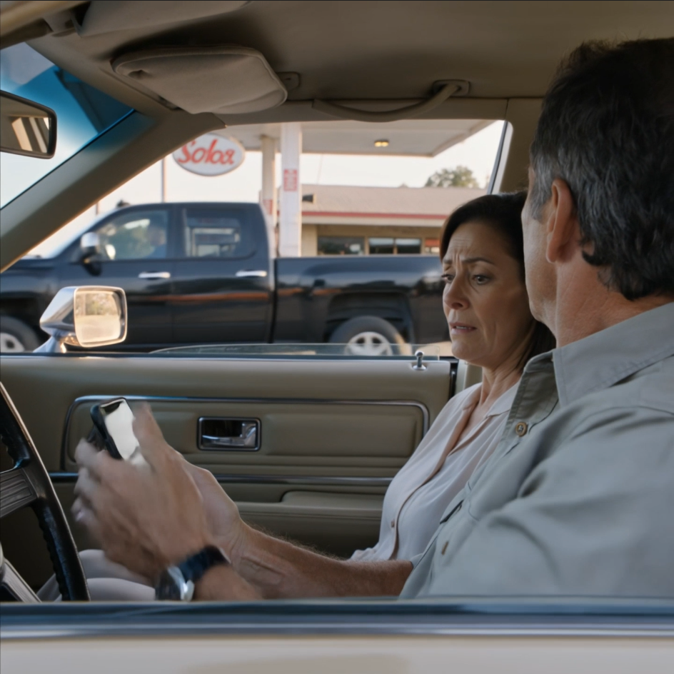 I slid lower in my seat so fast my purse spilled open across the floorboard. Lip balm, tissues, my reading glasses, a packet of peppermints—all of it scattered near my shoes. My heart hammered so loudly I could barely hear anything else.