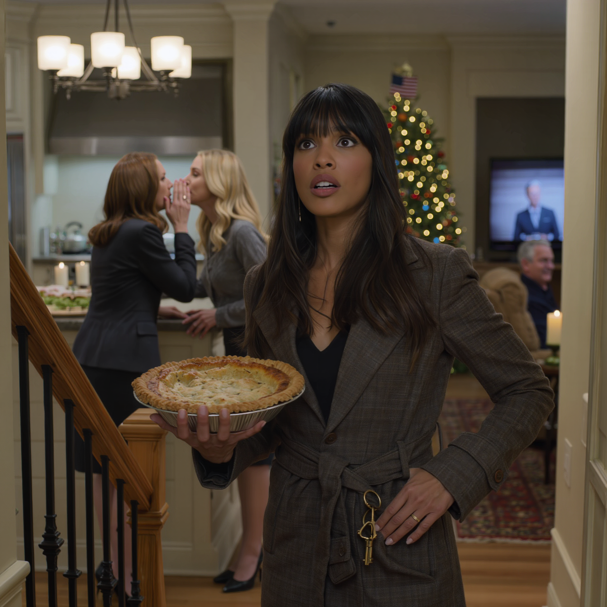 Christmas Eve at my parents’ house smelled like roasted turkey and cinnamon candles. White lights blinked along the porch railing. A wreath hung crooked on the front door—the same wreath from my childhood, its red bow faded to pink.