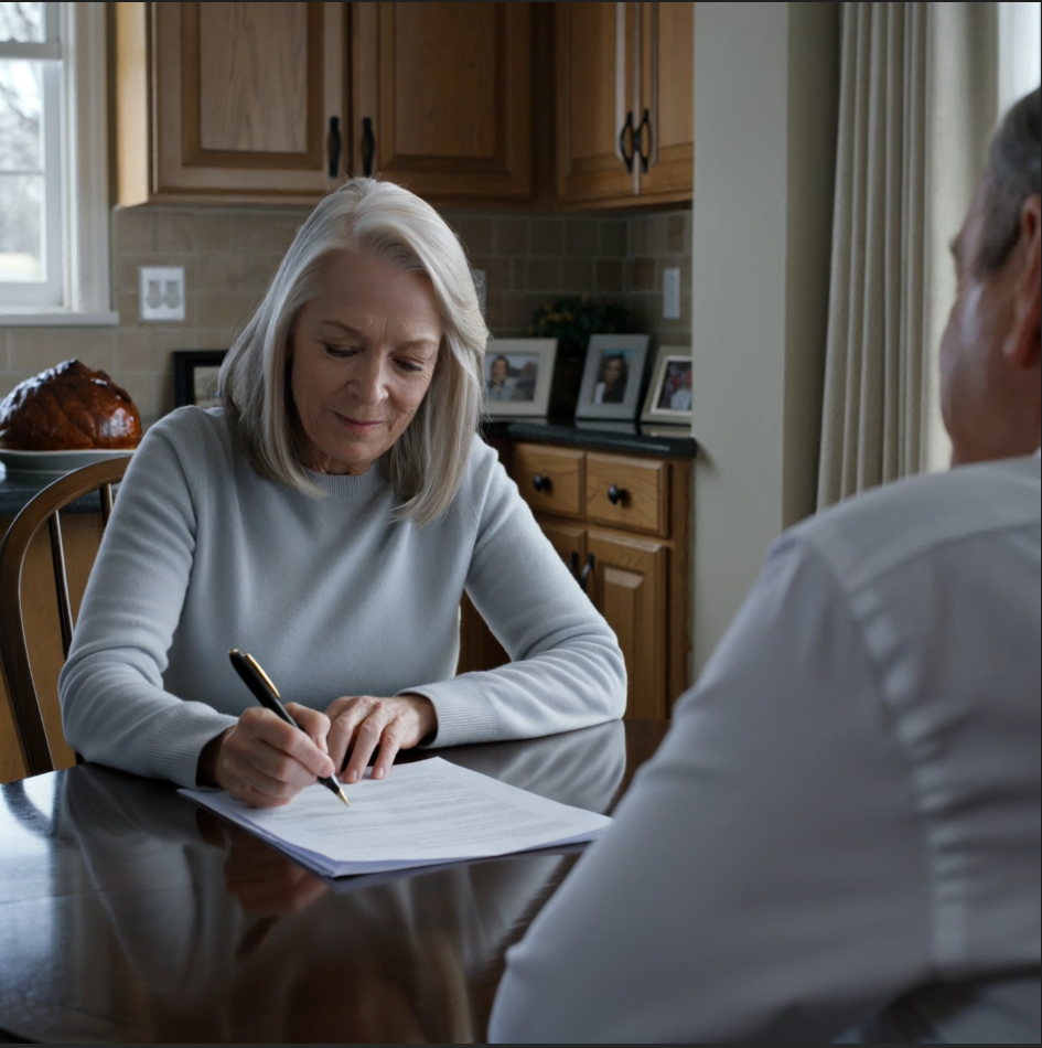I looked down at the folder, my hands trembling slightly. Inside were the papers that would erase 43 years as if they’d never existed.