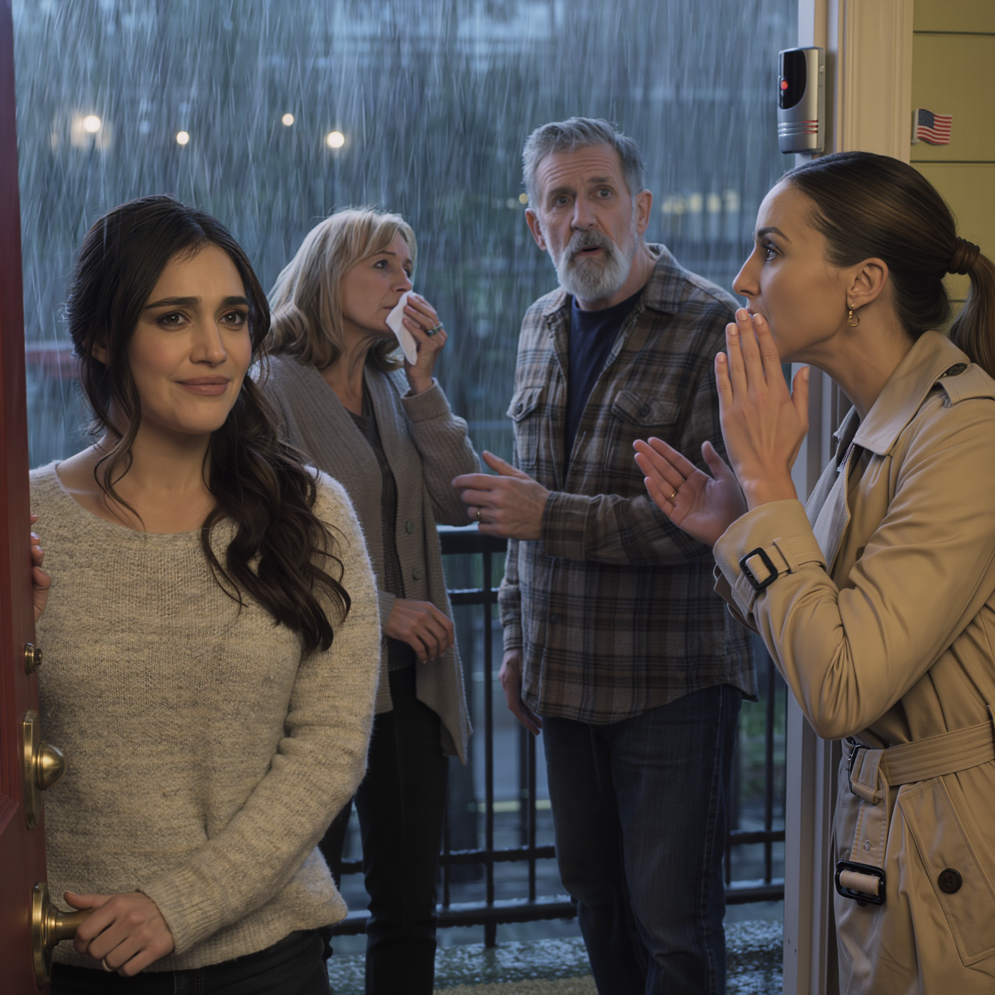 I’m Kora, 31 years old, and last week my doorbell camera recorded something I never thought I’d see: my parents standing on my porch while my mother practiced how to cry and my father mumbled, “We miss you, sweetheart,” like he was memorizing lines for a school play. And my sister, Melanie, stood beside them, correcting their every move like a director on a Broadway set.