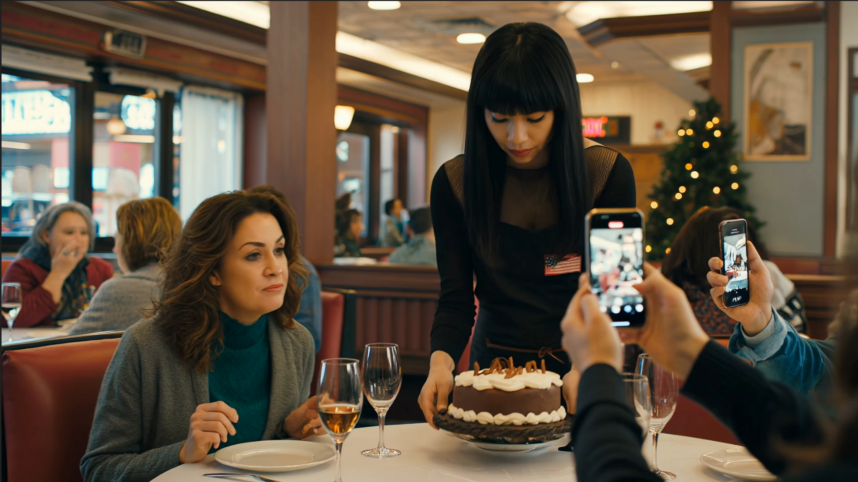 The waiter disappeared into the kitchen with instructions I couldn’t quite hear, though from the way my family members all suddenly sat up straighter and reached for their phones, I knew the main event was about to begin.