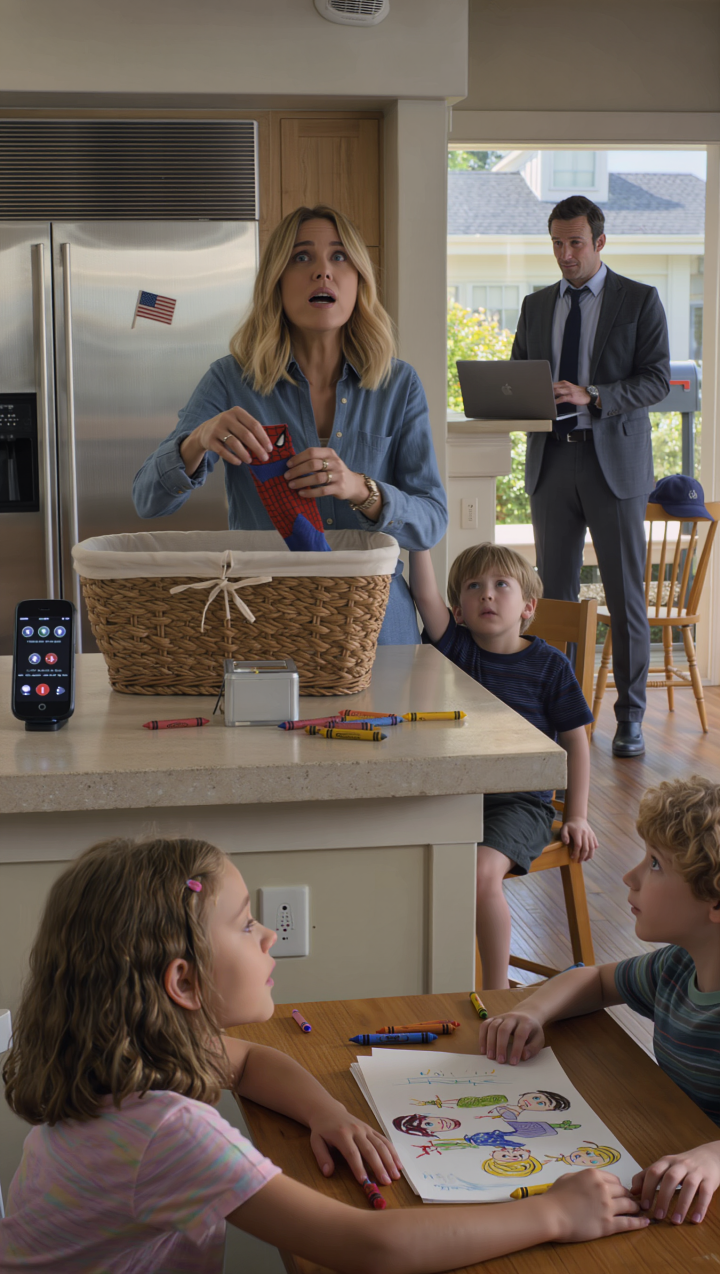 The phone on my kitchen counter was already on speaker when my world tilted sideways. I’d been folding laundry—socks, specifically—because that’s what normal Tuesday afternoons look like when you’re a mom of two. The basket sat between me and a pile of mismatched cotton casualties, and I was actually feeling pretty good about life. Lucy and Noah were at the table behind me, sharing the good crayons, working on what Lucy called a family portrait that featured everyone with triangle bodies and circle heads.